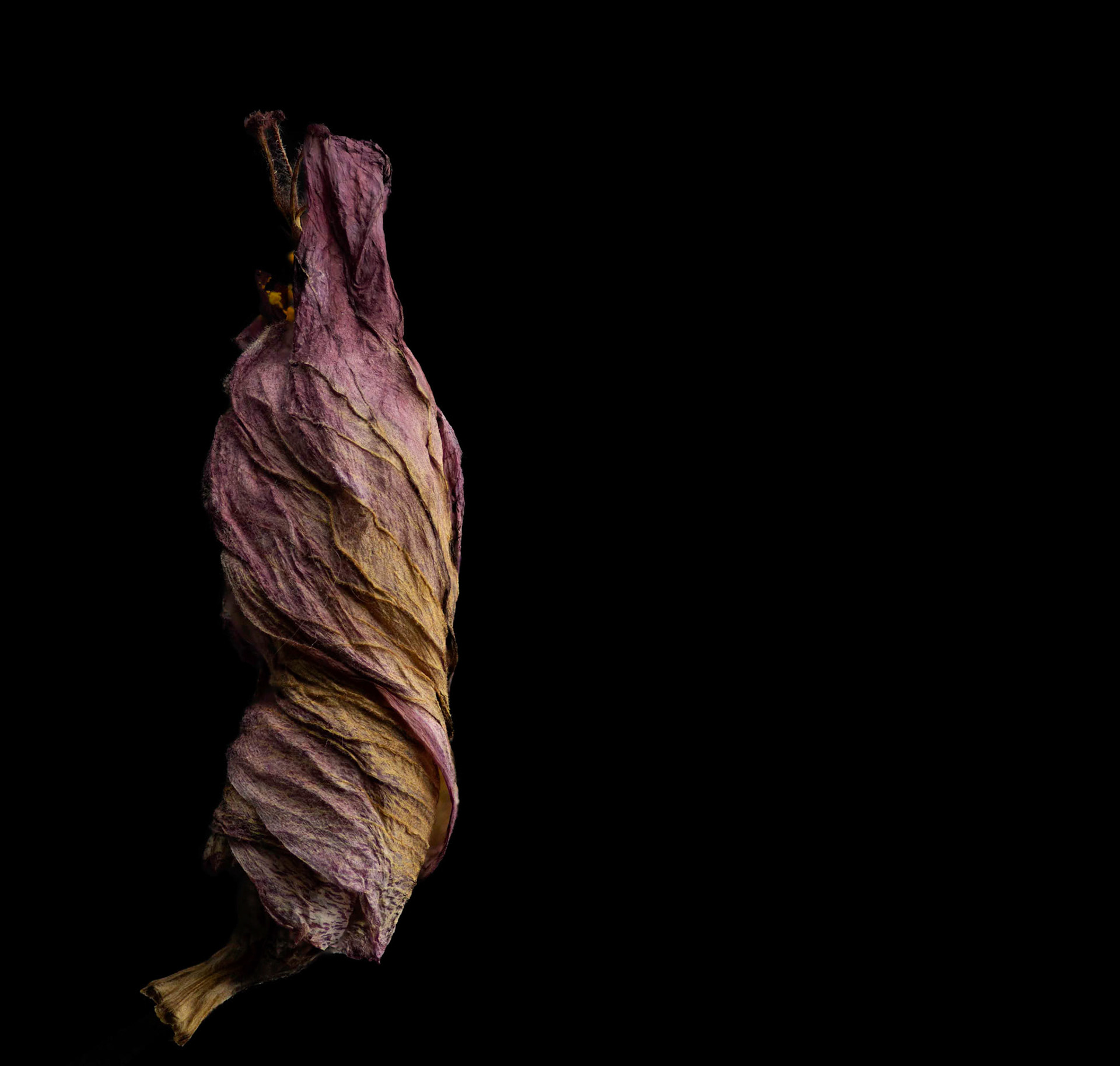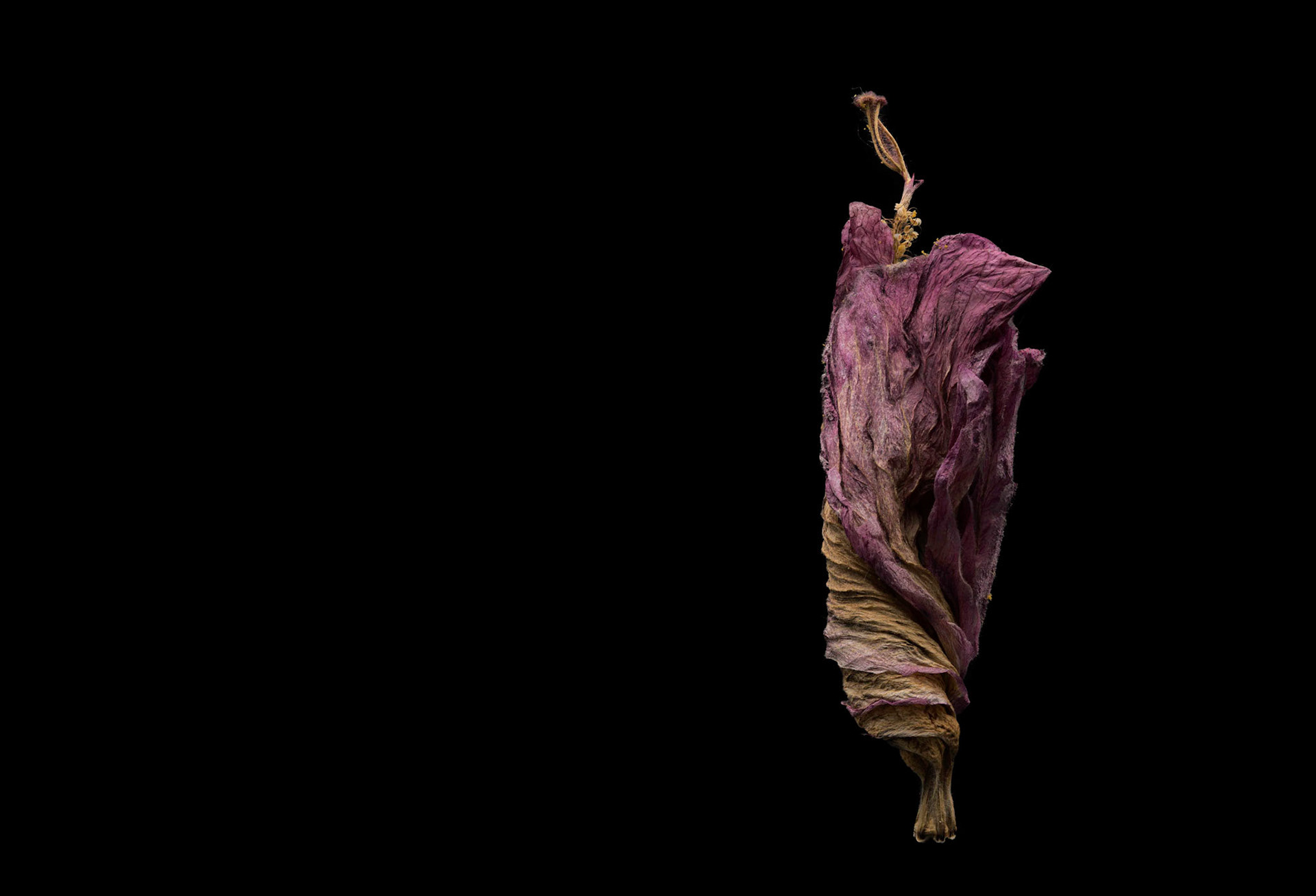 La rose de Chine est le nom populaire donné à la fleur de l'hibiscus. Fleurs éphémères, dont la flétrissure génère une extraordinaire pantomime. J'ai tenté d'approcher et d'isoler les tensions baroques de ces envoûtantes transformations.